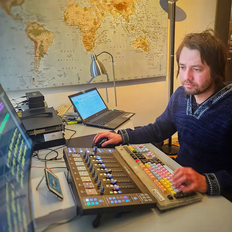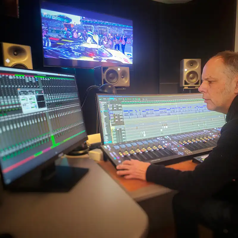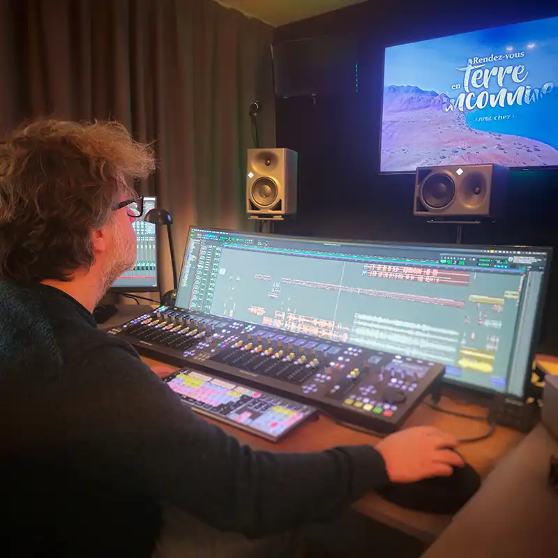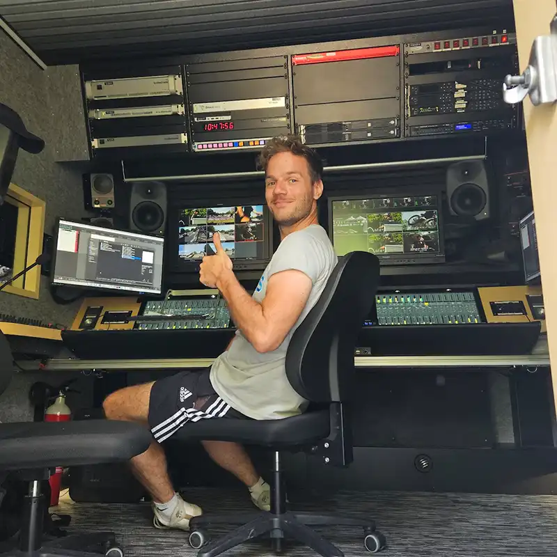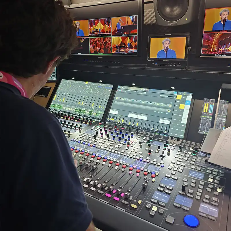 Outre ses compétences sur le terrain, Denis est également très à l’aise en studio, où il mixe régulièrement des émissions télé.